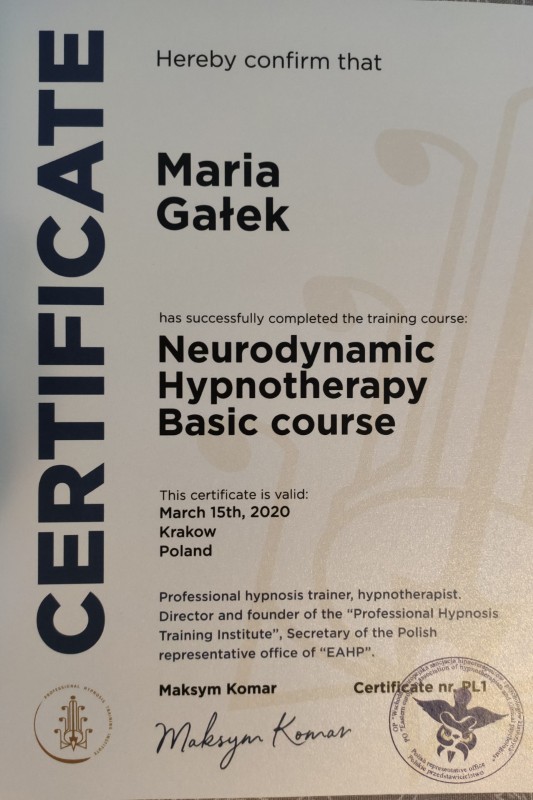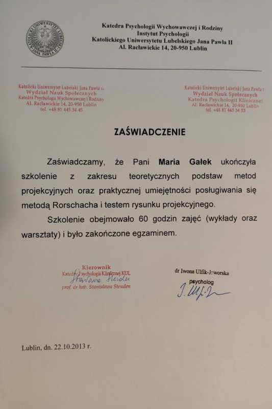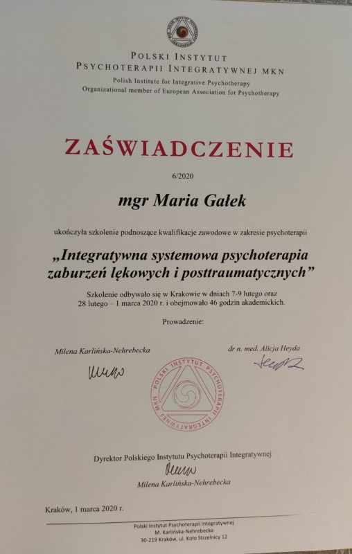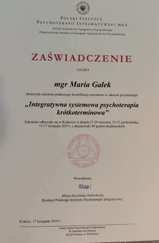 psycholog, psychoterapeutka psychodynamiczna, integracyjna (w procesie szkolenia)